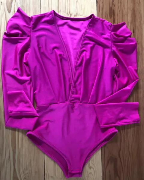 Plato blusa con escote súper padre, licra satinada manga princesa y se amolda