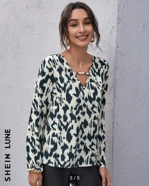 Sofisticada blusa manga larga excelente para tu look en oficina talla L bonito detalle en cuello en color beige con verde 🌿