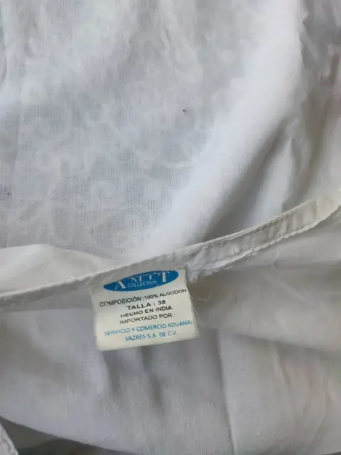 Blusa de manta blanca muy bonito bordada enfrente encaje en puños y abajo