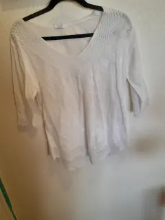 Blusa. Blusa de manta blanca muy bonito bordada enfrente encaje en puños y abajo