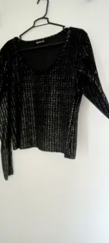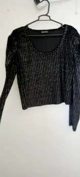 Blusa. Muy bonita negra con plata manga larga cuello redondo mangas