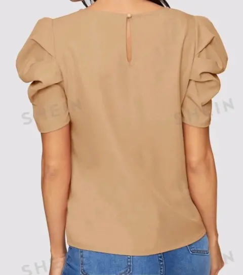 Blusa. Top de manga farol de espalda con abertura de ojo, color caqui.Talla M