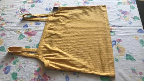 blusa con tirante y tipo top color mostasa la tela fresca y lijera