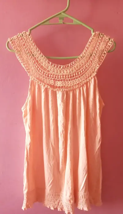 Blusa. No tiene detalles, talla chica, fresca para el calor. Tiene encaje en la parte del pecho se ve súper bonita.