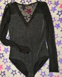 Blusa. Blusa leotardo, con Mangas transparentesColor negro con plataLickra