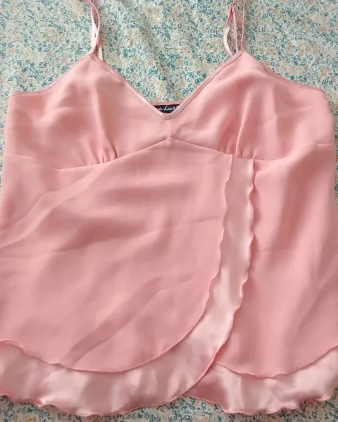 Blusa sensual color rosa tenue talla chica tiene tela transparente y de satín hermosa orma