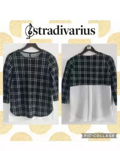 Blusa a cuadros B/N. Bella blusa a cuadros, talla 26 o S, quedaría tambien a XS, tela 97% poliéster y 3% elastano. Lo de arriba es tela gruesa y calientita.De axila a axila: 43 cmHombros: 35 cmLargo: 61 cm.