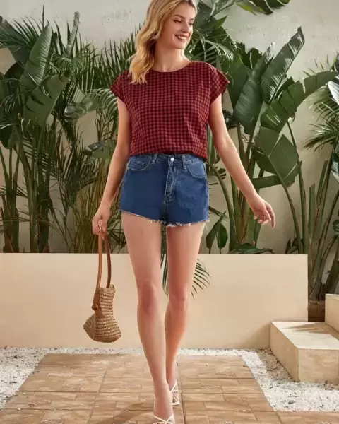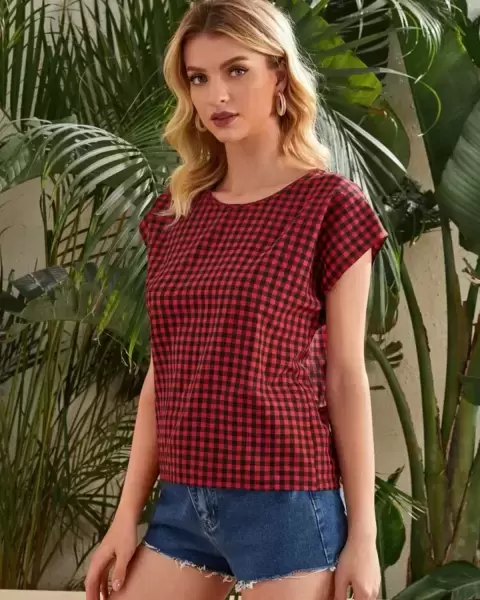 Blusa a cuadros SHEIN. SHEIN Top de manga murciélago a cuadros Hombro: 60.5 Largo 59.5 pecho: 102