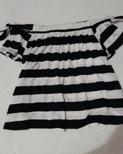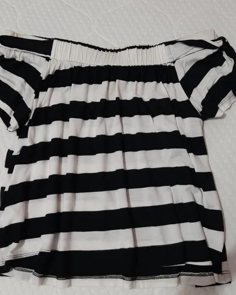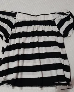 Blusa de rayas negro con blanco, a hombro, con cinta en hombros (decorativo no ajustable), sin ningun detalle