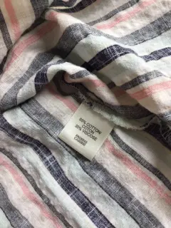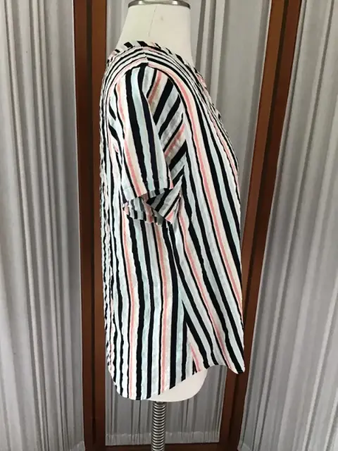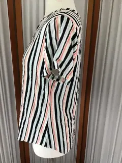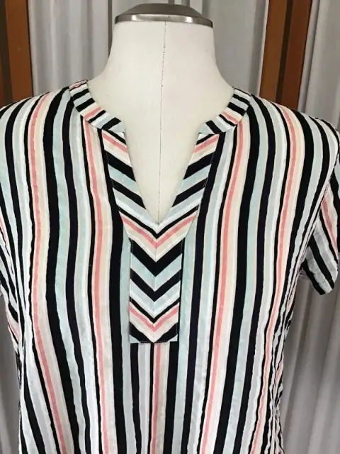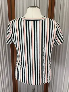 Blusa a rayas, manga corta, escote en v de la marca Van Heusen talla M. El producto es usado en excelentes condiciones sin detalles.
