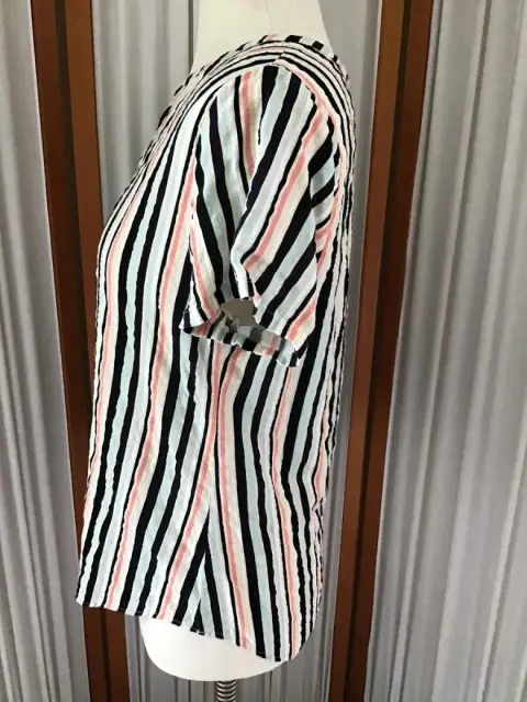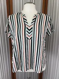 BLUSA A RAYAS CON ESCOTE EN V VAN HEUSEN. Blusa a rayas, manga corta, escote en v de la marca Van Heusen talla M. El producto es usado en excelentes condiciones sin detalles.