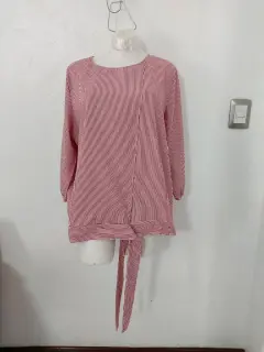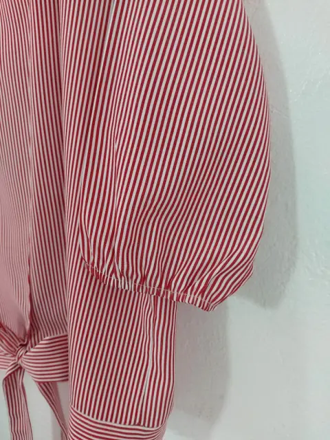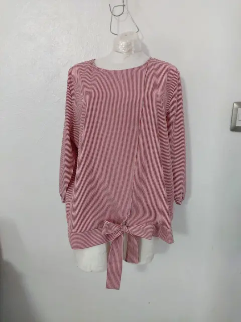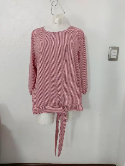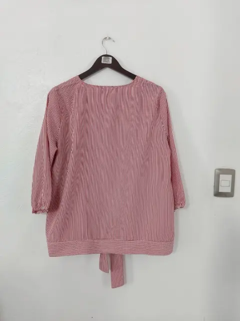 Blusa a rayas con moño. Preciosa!Como Nueva. Sin detalles y en perfecto estado.Manga 3/4No tiene strechTalla 42De axila a axila: 61 cmHombros: 42 cmLargo: 67 cmSe le cortó la etiqueta interior pero es tela 100% poliéster.