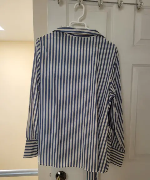 Blusa a rayas cruzada, anudada en cintura, escote en V, medidas: de axila a axila 59cm, largo 71