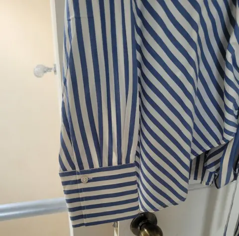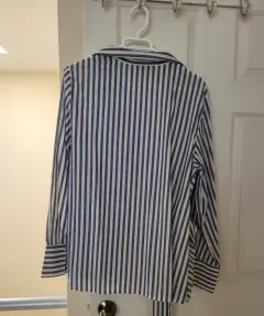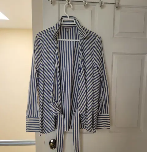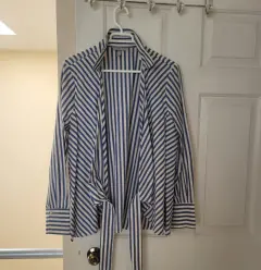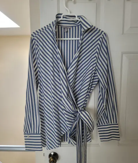 Blusa a rayas cruzada. Blusa a rayas cruzada, anudada en cintura, escote en V, medidas: de axila a axila 59cm, largo 71