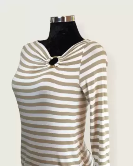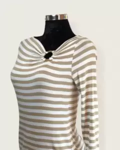Blusa a rayas Michael Kors. Lindísima blusa Michael Kors, es color blanca con líneas beige y con un hermoso aro con el grabado de la marca en color dorado, desde luego es una blusa original.