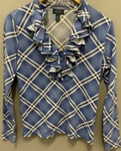 -Preciosa blusa Ralph Lauren, en perfecto estado-Talla Mediana-Confeccionada 100% algodón-Sofisticado inserto de olanes delanteros-Manga larga a rayas-Si requieres mayor información o fotos no dudes en contactarme 😊😉
