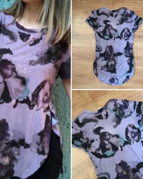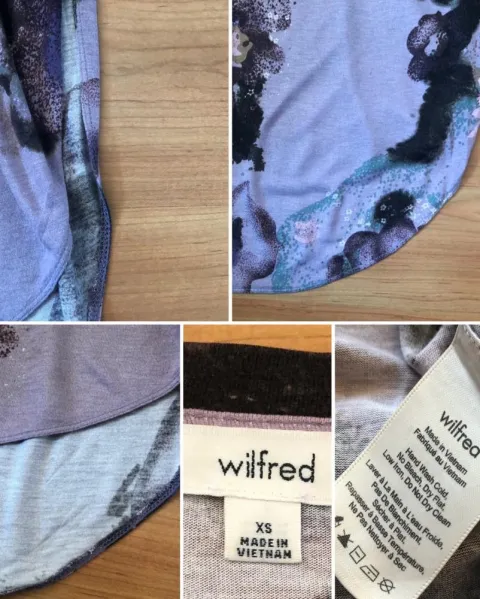 Blusa Aberturas Laterales- WILFRED CANADÁ. Blusa tipo T-shirt Manga corta. Estampado en fondo lila. Marca Wilfred adquirida en Aritzia Canadá. Busca su sitio web es una marca prestigiada y de renombre. Talla XS pero queda a S/26 de Zara para mayor referencia. Aberturas en costados que llegan a la cintura, se aprecia en fotos puesta. Más larga de atrás que de adelante con borde en forma óvalo. Perfecta con leggings o para un look tipo layers con Minis, shorts, pants, joggers, skorts o lo que se Te ocurra. Tengo una similar a la venta en beige con relieves ❤️ EL MEJOR PRECIO ES EL PUBLICADO, pero abierta a ofertas justas y razonables. PRENDAS NUEVAS no puedo bajarme demasiado. PRENDAS C/ USO quizas podamos negociar (aunque tengo pocas) Ten x seguro q conmigo te estás llevando ALGO BIEN (ni ropa de paca, ni cosas para la basura) Muchas gracias
