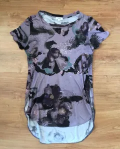 Blusa tipo T-shirt Manga corta. Estampado en fondo lila. Marca Wilfred adquirida en Aritzia Canadá. Busca su sitio web es una marca prestigiada y de renombre. Talla XS pero queda a S/26 de Zara para mayor referencia. Aberturas en costados que llegan a la cintura, se aprecia en fotos puesta. Más larga de atrás que de adelante con borde en forma óvalo. Perfecta con leggings o para un look tipo layers con Minis, shorts, pants, joggers, skorts o lo que se Te ocurra. Tengo una similar a la venta en beige con relieves ❤️ EL MEJOR PRECIO ES EL PUBLICADO, pero abierta a ofertas justas y razonables. PRENDAS NUEVAS no puedo bajarme demasiado. PRENDAS C/ USO quizas podamos negociar (aunque tengo pocas) Ten x seguro q conmigo te estás llevando ALGO BIEN (ni ropa de paca, ni cosas para la basura) Muchas gracias