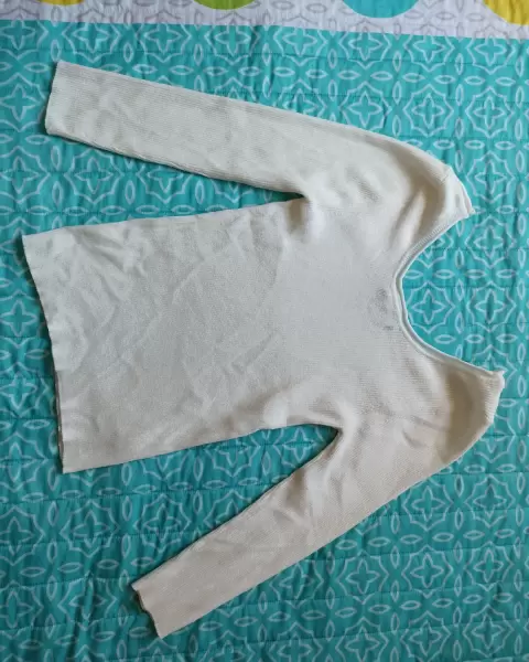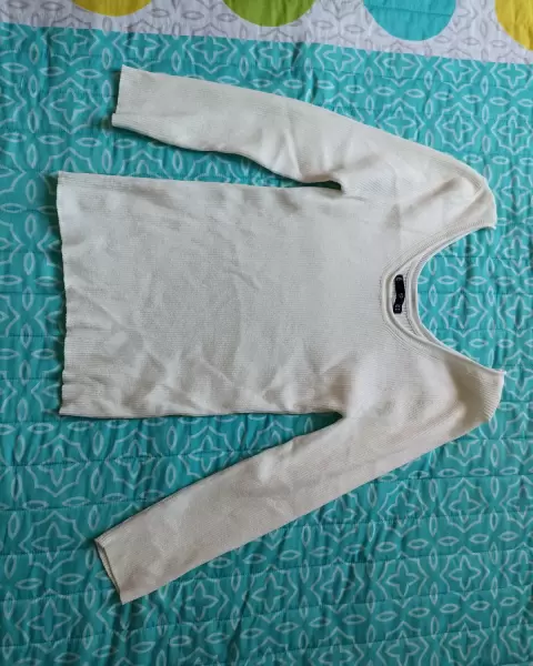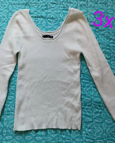 Blusa acanalada. Blusa acanalada color blanco, tela gruesa con bastante elástico. Cuello redondo.