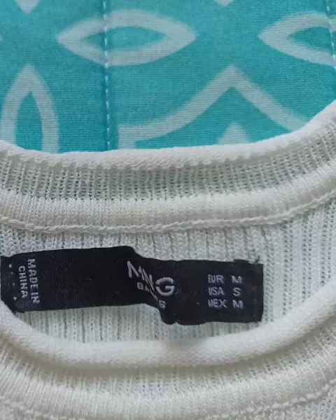 Blusa acanalada color blanco, tela gruesa con bastante elástico. Cuello redondo.