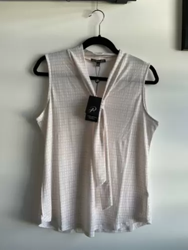 Hermosa y fresca blusa marca Adrianna Papell, talla:M, está nueva con su etiqueta original. Se compro en Estados Unidos. No tiene detalles, mide 34cm de hombro a hombro, 51 cm de axila a axila y 65cm de largo.
