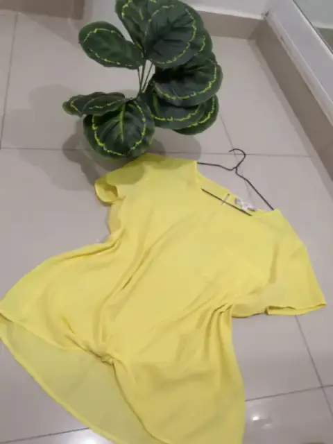 Blusa amarilla manga corta. Blusa trastucida muy linda super desquitable. Puede quedar a talla S o MNo estira