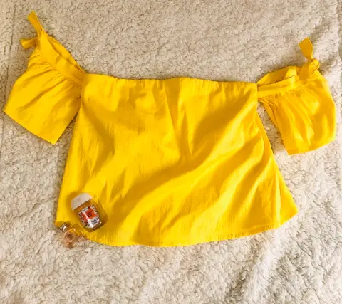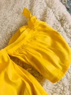 Blusa amarilla neón. Blusa amarilla neón hombros descubiertos y mangas que se ajustan .Trae plaquita de la marca studio F .