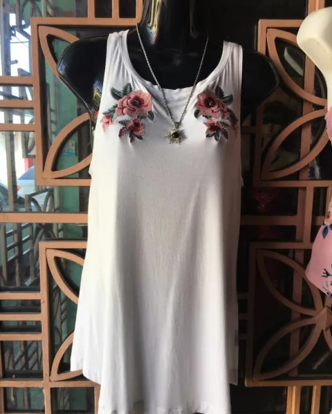 Padrísima blusa de tirantes con diseño de flores bordadas. Sin etiqueta y sin detalles. La prenda va sin accesorios. Cómoda y suave