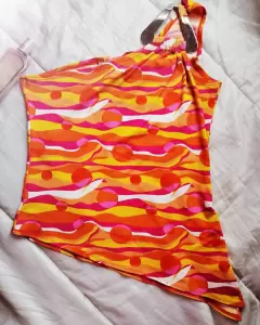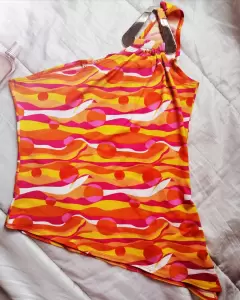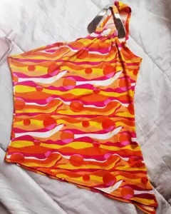 Bonita blusa de un sólo hombro color naranja, con plaquita dorada al hombro, esta totalmente nueva, la tela es licra delgada muy frsca