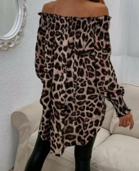 Blusa animal print. Hermosa blusa animal print, hombros descubiertos, nuev, viene muy amplia, talla s pero también puede quedarle a una talla m