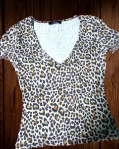 Blusa animal print. Blusa de manga corta con escote v en buen estado sólo se uso una vez el material es de algodón