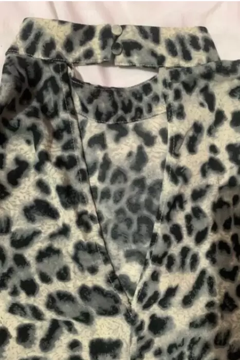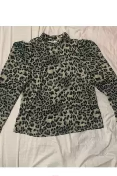 Blusa animal print manga abullonada. Hermosa, manga larga y abullonada talla M se abotona al cuello por atrás con escote en la espalda Medida de ax a ax 46 cm de cintura es voladita 57 cm de largo 61 cm
