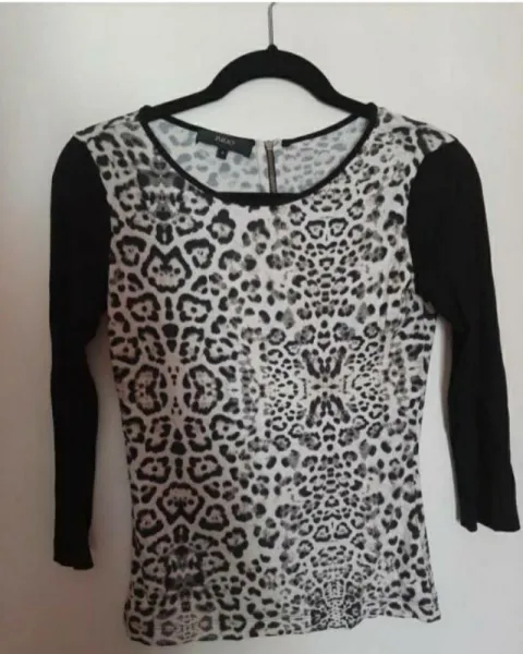 Blusa animal print negra. Blusa estampada animal print blanco/negro, talla S pero puede quedar también a M. La usé pero sigue estando en perfecto estado.