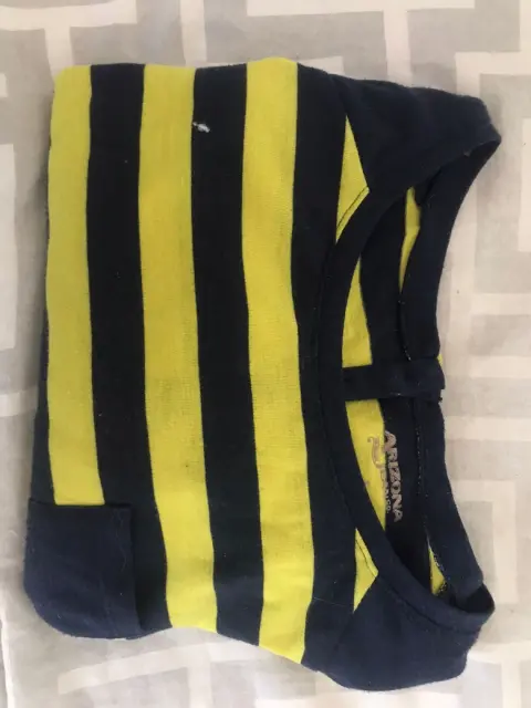 Hermosa blusa de algodon a rayas azul con verde florecente manga larga con pequeña bolsita y botones atrás , talla chica MARCA ARIZONA