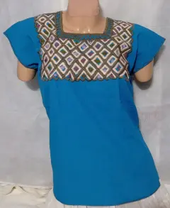 Blusa Artesanal con hermoso bordado,ideal para cualquier ocasiónColor azulTalla MCompletamente Nueva