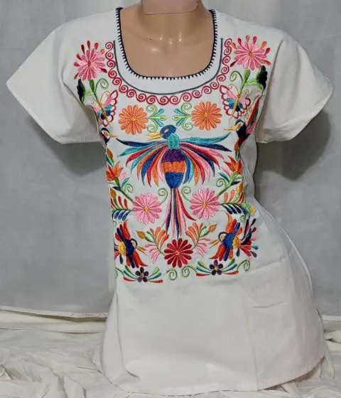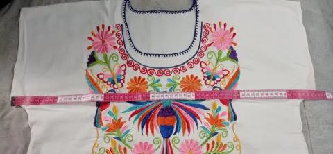 Blusa artesanal. Bonita blusa artesanal con hermoso bordado y tiras para ajustar cintura, manga cortaTalla GCompletamente Nueva