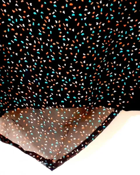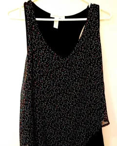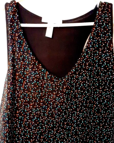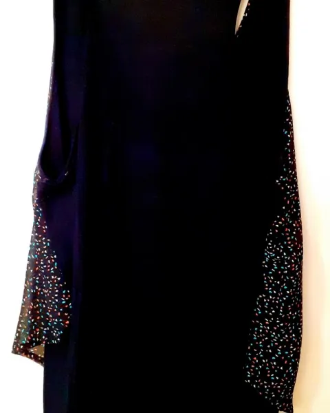 Blusa asimetrica negra con textura colorida. Blusa sin manga frente transparente con forro en algodon, corte asimetrico, muy comoda y fresca