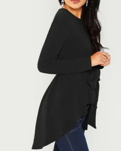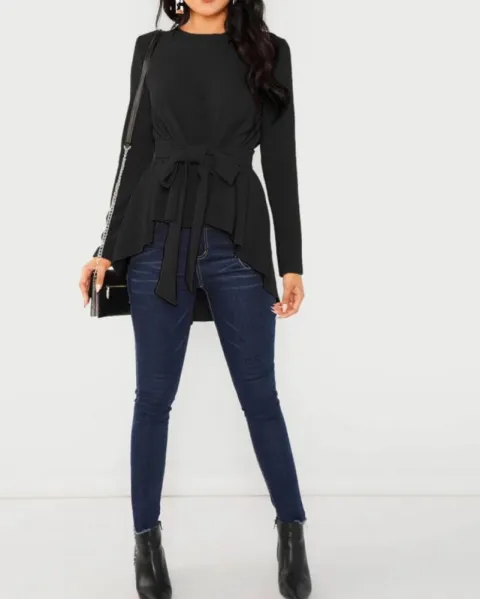 Blusa Asimétrica Negra Shein. Blusa asimétrica cola de pato con cinturón en color negro súper fashion, te va quedar perfecta con tus jeans.