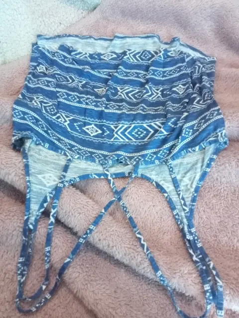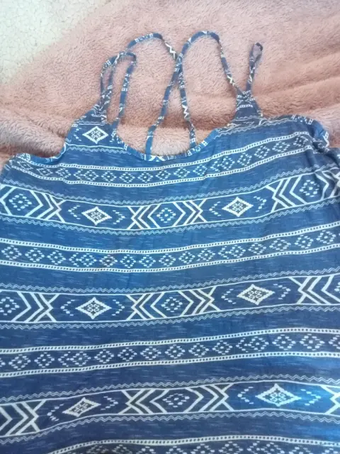 Blusa azul. Blusa azul con diseño en blanco, de tirantes cruzados, corta, bonita y excelente para la playa