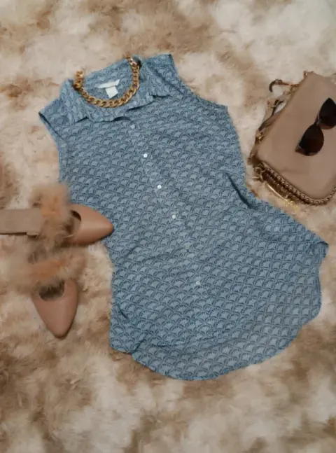 Blusa ideal para el calorcito por qué es de chifón pero no transparenta, súper versátil para usar con jeans o flats. Tiene todos sus botones y no tiene detalles.