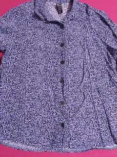 Blusa azul casual. Blusa estampada casual de manga larga, tela delgada y suave, tipo camisa, no transparenta.