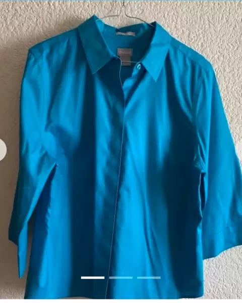 Blusa 100% de algodón , la manga es 3/4 , y el color está hermoso azul celeste. La talla es equivalente a XL