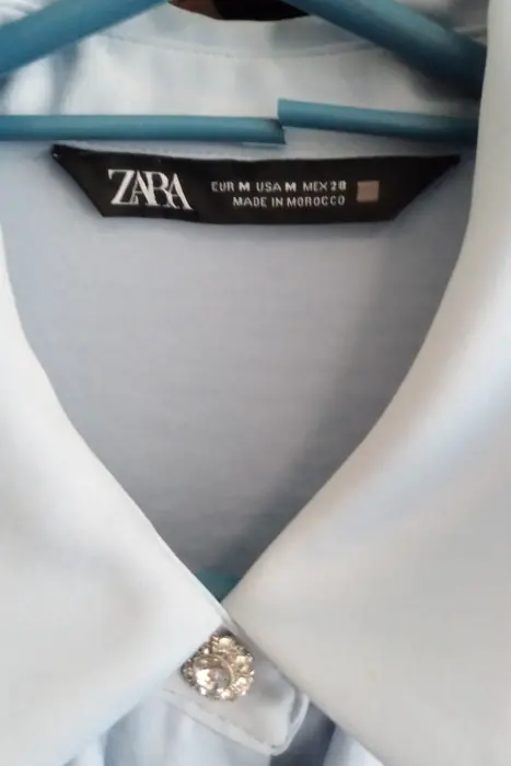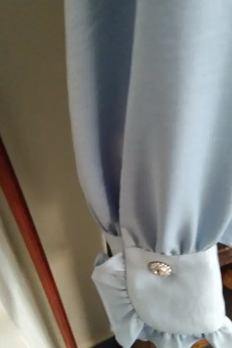 Blusa azul cielo. Bonita blusa azul tela satinada con bonitos botones en muñecas y cuello olas afrenta comoda puesta una vez