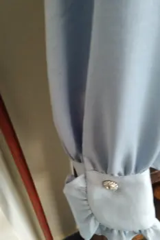 Bonita blusa azul tela satinada con bonitos botones en muñecas y cuello olas afrenta comoda puesta una vez