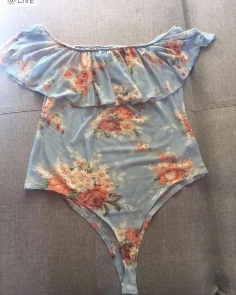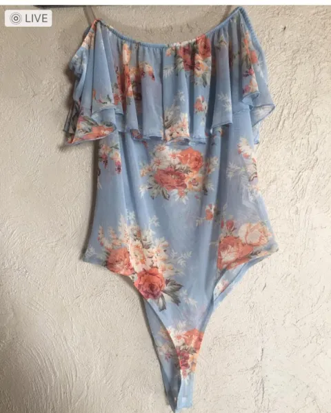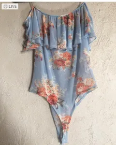 Blusa Azul Cielo de flores. Blusa en buen estado va a los hombros es muy fresca es talla L , la tela es muy elástica queda perfecta para un M y una talla L