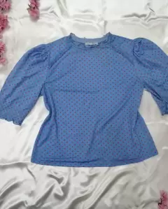 Blusa azul de mangas ¾. La blusa es talla SLa tela estira bastante, es ligera.Marca Zara