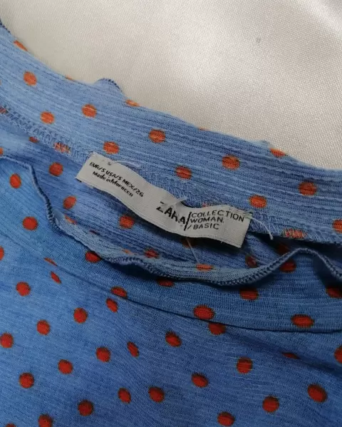 La blusa es talla SLa tela estira bastante, es ligera.Marca Zara
