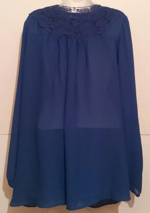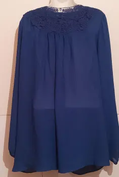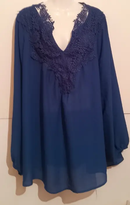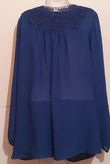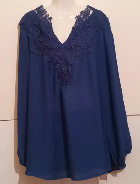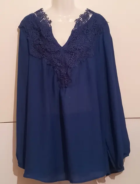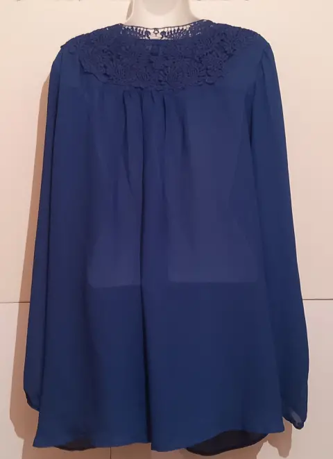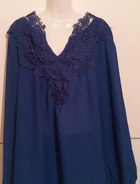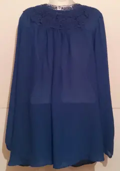 Blusa azul eléctrico. Descripción:Bonita blusa, color azul marino, con mangas, talla XXL, bonito diseño con bordado en el frente, manga larga, en buen estado, mide en hombros 44 cm, en pecho 66 cm, en cintura 74 cm y de largo tiene 82 cm.