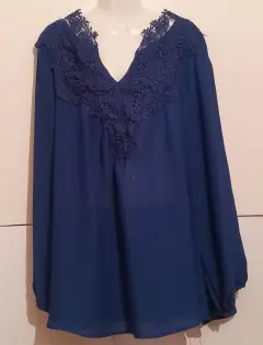 Descripción:Bonita blusa, color azul marino, con mangas, talla XXL, bonito diseño con bordado en el frente, manga larga, en buen estado, mide en hombros 44 cm, en pecho 66 cm, en cintura 74 cm y de largo tiene 82 cm.