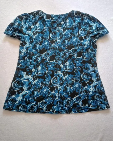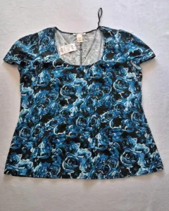Blusa azul estampada de marca americana. Blusa mide alrededor de las axilas 110cm